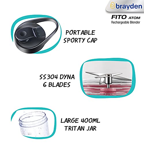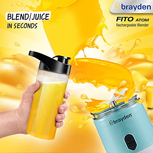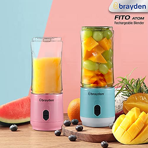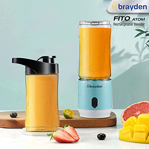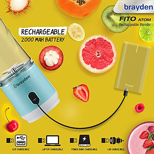 Brayden Fito Atom Portable Smoothie Blender with 2000 mAh Rechargeable Battery and 3.7V Motor with 400ml Tritan Jar, Blue
