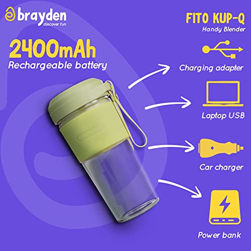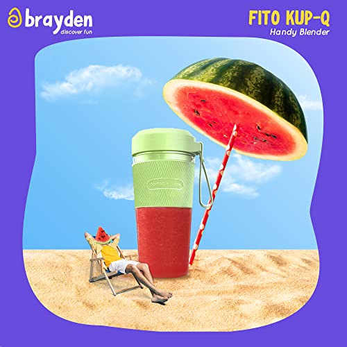 Brayden Fito Kup-Q Portable Power Blender | Gym, Office, Travel and Baby foods | Smoothies and Juices | 7.4V Motor | 2400 mAh Li-ion Rechargable Battery | Break Proof Tritan Jar (300 ml, Green)