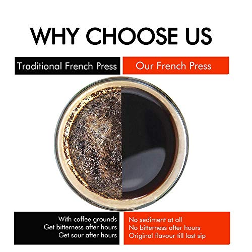 BRBHOM i Cafilas The Original Portable Premium Stainless Steel French Press Coffee Maker, Vacuum Insulated Travel Mug (12 oz) Durability Easy Use& Clean French Presses (Black)