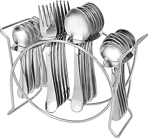 Cutlery Set of Spoons and Fork ..>—>.. We provides fine and classy cutlery that can make a difference to your dining experience ..>—>.. Each piece in the Shapes Cutlery Set has delicate and simple design elements on them that will never go out of style no matter how often you use them ..>—>.. Add a touch of design to the table with practical, well-designed cutlery. —..>—>.. — High Quality Stainless Steel Material ..>—>.. The spoons, forks and the cutlery stand are made with high quality stainless steel which is a rigid and corrosion resistant material. ..>—>.. The set is made with high density material to make it durable and endure through years of usage. —..>—>.. — Mirror Polished for Easy Cleaning ..>—>.. The cutlery and the stand is mirror polished to make it resistant against corrosive elements. ..>—>.. This also makes the smooth outer surface extremely easy to clean. ..>—>.. They can be rinsed with mild utensil soap to retain the elegant sheen for years. —..>—>.. —Supreme Quality ..>—>.. Unlike other flatware sets that sooner or later will wear out, the Shapes Products full flatware set is here to stay ..>—>.. Made of good quality stainless steel, this flatware set will never rust, bacteria resistant, corrode or lose its shine ..>—>.. It has high gloss finish which is easy to clean!