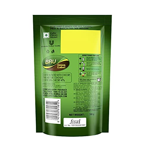 Bru Green Label Filter Coffee – Ground & Roast, Made For Blend of Coffee And Chicory, 500 g