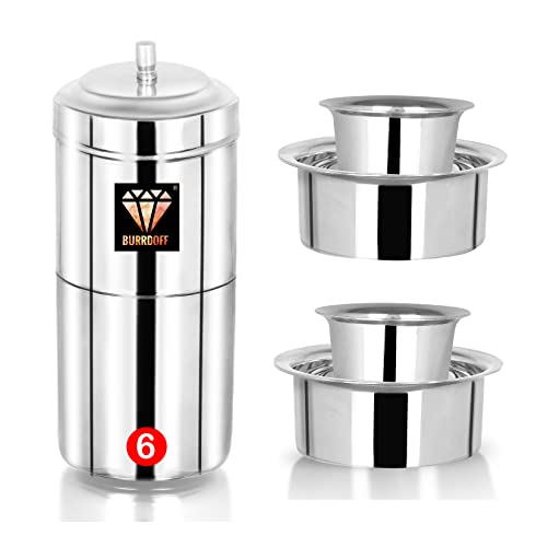 Product Description Backed by rich industry experiences; we are highly engaged in offering a premium quality range of Stainless Steel Coffee Filter By BURRDOFF Coffee . “Making a perfect cup of filter coffee is an art, that’s perfected over time” – South Indian Mothers! Instructions to Make Filter Coffee Maker Steel with Stainless Steel Coffee Filter for Home: Filter coffee is brewed using a coffee filter which has two cylinders. Top Cylinder contains Pin holes. The idea is for the ”decoction” to drip down from the top cylinder, through the tiny pin holes into the bottom cylinder. How to make a perfect south Indian coffee with our coffee filter ☛ In the upper chamber place the coffee filter then lightly tamp the powder using the pressing disc. Leave the disc in place after tamping. The powder should not be tamped as hard as espresso grounds. Now place the upper chamber on the lower one and fill the upper chamber with boiling water. Cover the coffee with filter and let it brew for 15 to 20 min. While the decoction is brewing, heat milk to a boil on the stove. When the decoction is finished, pour 1 to 2 Tbsps. Of the decoction into the dabara with milk. now add sugar as per your desire. Pour the mixture back and forth between the dabara and tumbler, using high arcing motions to pour, until the coffee is cool enough to drink. Serve in the dabara, setting it in the tumbler.
