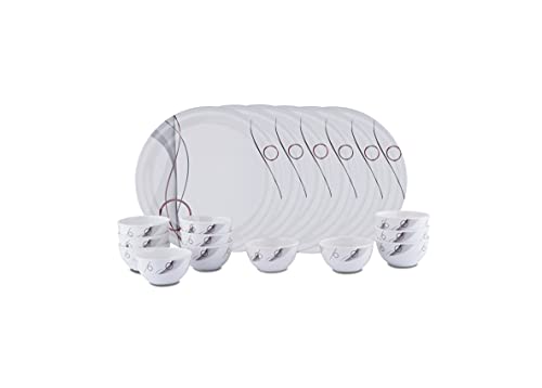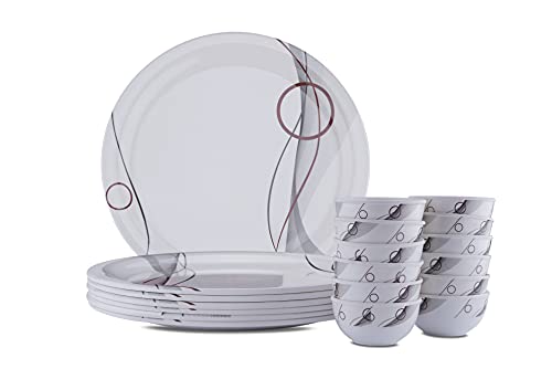 Dinnerware set includes:18-piece melamine dinnerware set to includes 6 dinner Full plates & 12 Deep Bowls