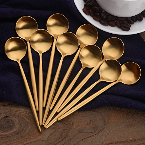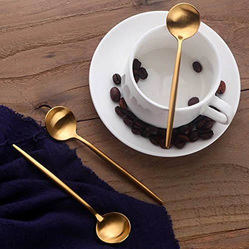 Specifications product name: 5 inch fashion design espresso spoon Package include: 12pcs coffee spoons Material: stainless steel Dimension: 5 inch (22 cm) Weight: 08 oz (61 g) color: gold Suitable Occasion Perfect for daily home kitchen use, catering services and buffet use They are not only suitable for party, festival and formal events, wedding, birthday, housewarming and more This set is also a great present for friend Elegant Design Resistant to rust, corrosion and dishwasher safe A great replacement set enough for daily use Made of food grade stainless steel, no rough surface, highly corrosion resistant, more durable Washing: 1 Dishwasher safe 2 Keep your products clean It can make the material in fresh status 3 Use clean water to flush it 4 Wipe it after used 5 In order to assure durability, please do not use steel wire or hard material to clean this product If we fail to satisfy you for any reason, please do contact us in time, we promise every customer with 100% fine after-sell service We’ve been always trying our best to make it pleasant shopping experiences for everyone of you