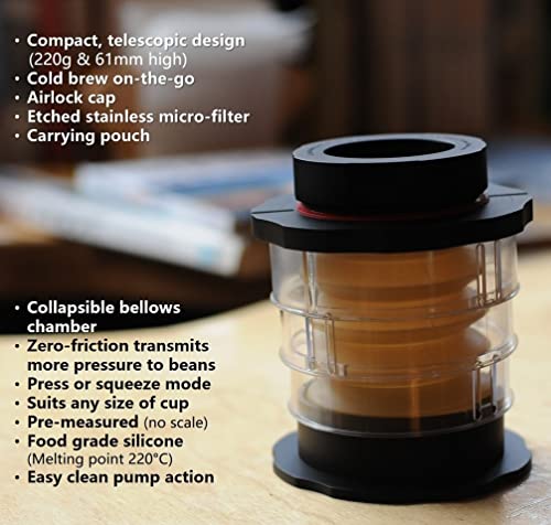 Pump Mechanism: Perfect cleaning of micro-holes (filter) with bellows’ pumping action, Visual check of brewing progress.