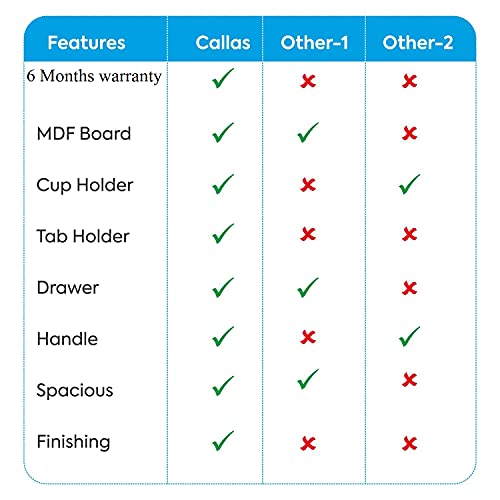 【MUTI-FUNCTIONAL DESK】 – Callas Bed Table Built-in iPad stand groove for holding ipad or kindle.And desk comes with a table cup holder to store cups well. The Anti-Slip Sponge can keep your laptop safe while tilted, and provide you comfort and stability while using.