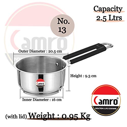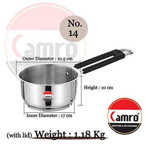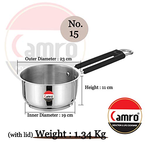 CAMRO Sauce PAN ENCAPSULATED Bottom Induction Base Stainless Steel with LID Set of 3 (No.13, No.14 & No.15)