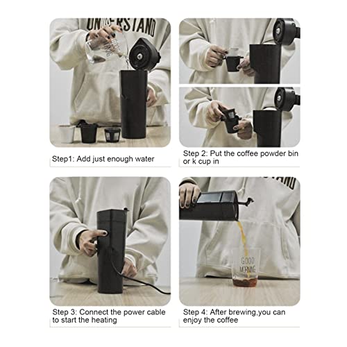 【FULLY AUTOMATIC】This mini coffee maker is fully automatic, just need to wash the coffee cup, press the switch button for 5 seconds to run the machine. Meanwhile, this mini espresso machine is equipped with a car cigarette lighter DC12V, with stable performance and can be used with confidence.