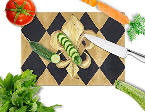 Caroline’s Treasures 8125LCB Black and Gold Fleur de lis New Orleans Glass Cutting Board Large, 12H x 16W, multicolor