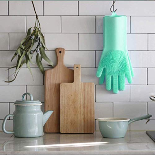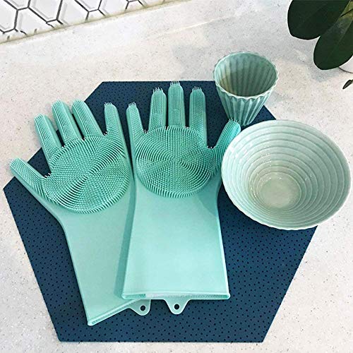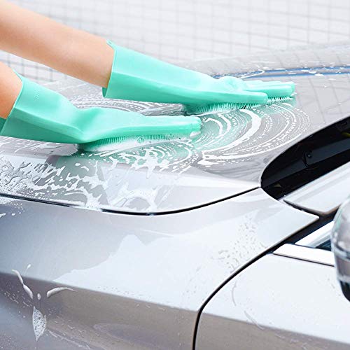 ➤ DURABLE & ECO-FRIENDLY: this silicone gloves with wash scrubber is made with heat resistant FDA-approved silicone. coated with anti-microbial properties to resist bacteria build up! Great for cleaning kitchen, dish washing or cleaning the car.