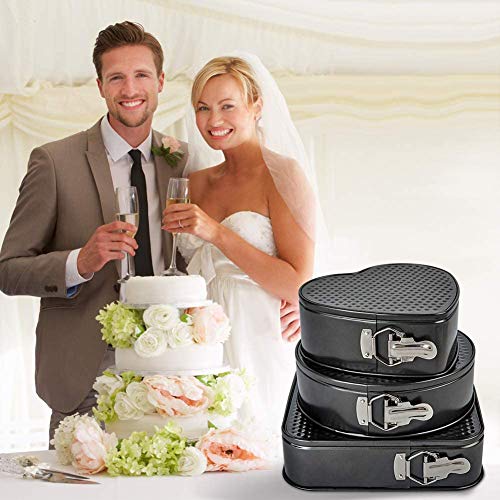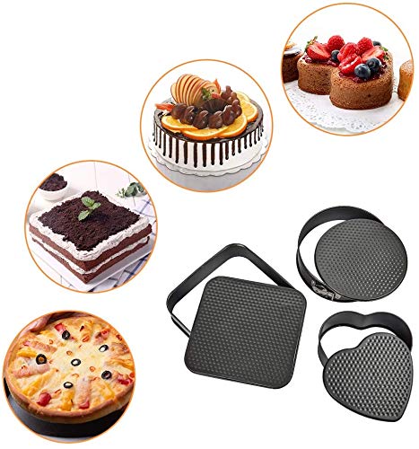 NONSTICK SPRINGFORM PAN SET:This springform pan set includes 3 piece non-stick pans (9 inch, 10 inch, 11 inch),includes square,round and heart shaped tin to bake for all occasions,It can be used alone or in combination as needed.Bake easily,no more chaos.Your cake will be always perfectly shown.
