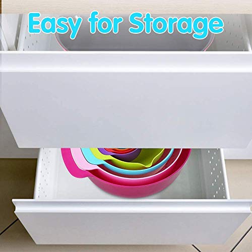 HIGH CLASS QUALITY — The compact mixing measuring bowls set are made of quite thick food grade pp and unique silicone. It means Non Toxic, BPA FREE, very SAFE and STURDY, so don’t worry bending, break or sticking during use. Besides, Easy to use or clean. Dishwasher safe for convenient cleaning, what a handy & useful kitchen set for baking and cooking!