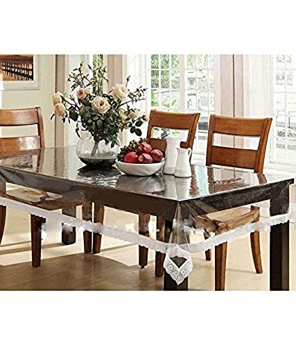 CASA-NEST Thick PVC Silver lace Waterproof Rectangular Dining Table Cover 10-12 Seater 60×120 inches, Transparent trans005