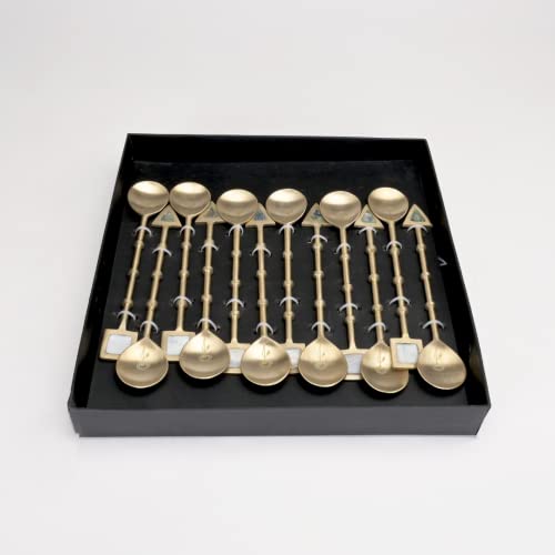 Make your meal times on trend with our antique finish cutlery set. With a super chic brass effect this cutlery set is super luxurious. It has a stainless steel body with a pretty floral emboss to make it an accentuate piece in your dinnerware. This 12 piece set includes 6 square back dessert spoons and 6 triangle back dessert spoons. Perfect for setting your dinner table for special occasions and every day dining. High quality finish, the cutlery set has a super luxurious shine finish to give an antique look and feel. This cutlery set is guaranteed to give a super stylish finish to any table setting.