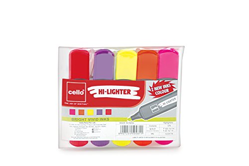 Be the first to review “Cello Hi-lighter (Pack of 5, Vivid Colors – Yellow, Pink, Peach, Orange and Purple) | Easily Applicable Highlighters | School & Office Stationery”