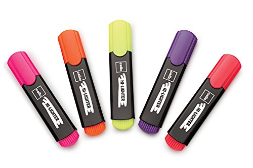 Cello Hi-lighter (Pack of 5, Vivid Colors – Yellow, Pink, Peach, Orange and Purple) | Easily Applicable Highlighters | School & Office Stationery