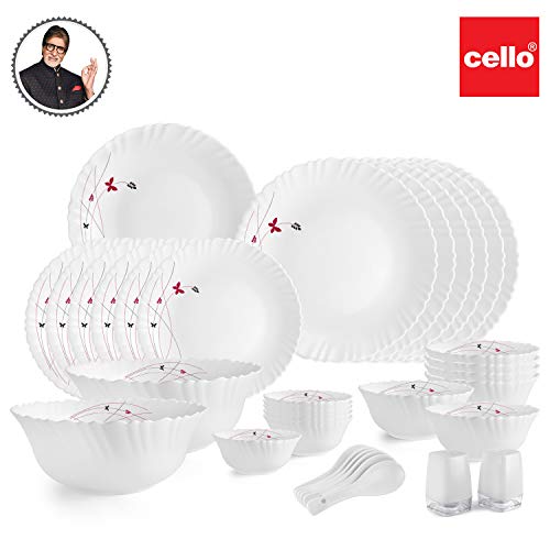 Be the first to review “Cello Opalware Dazzle Series Lush Fiesta Dinner Set, 35Pcs | Opal Glass Dinner Set for 6 | Light-Weight, Daily Use Crockery Set for Dining | White Plate and Bowl Set”