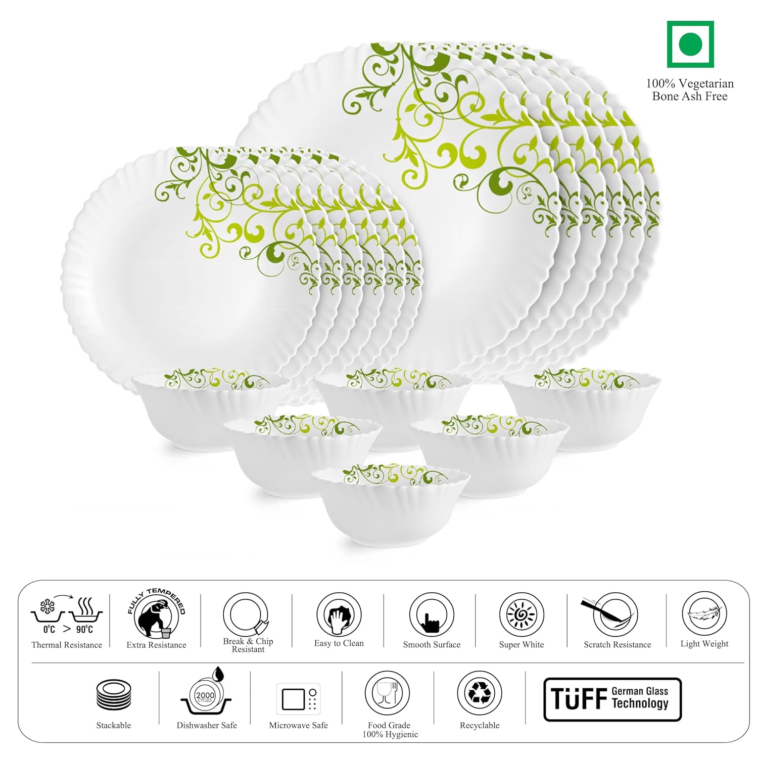 Be the first to review “Cello Opalware Dazzle Series Oleander Dinner Set, 18 Units | Light-Weight, Daily Use Crockery Set for Dining | White Plate and Bowl Set”