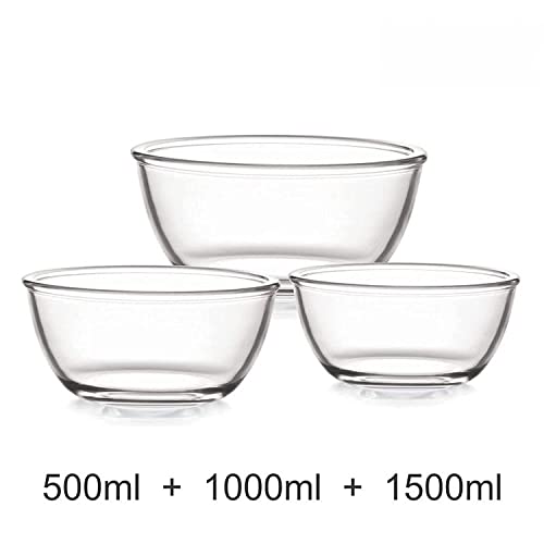 Product Colour: Clear/Transparent, Product Material: Toughened Glass, In the box content: 1pc-500 ml bowl, 1pc- 1000 ml bowl, 1pc- 1500ml bowl