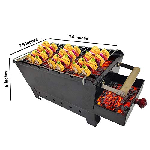 Chefman Charcoal Barbeque Grill Set for Home with 6 skewers, 1 Tong, 1 Gloves (Out Door BBQ)