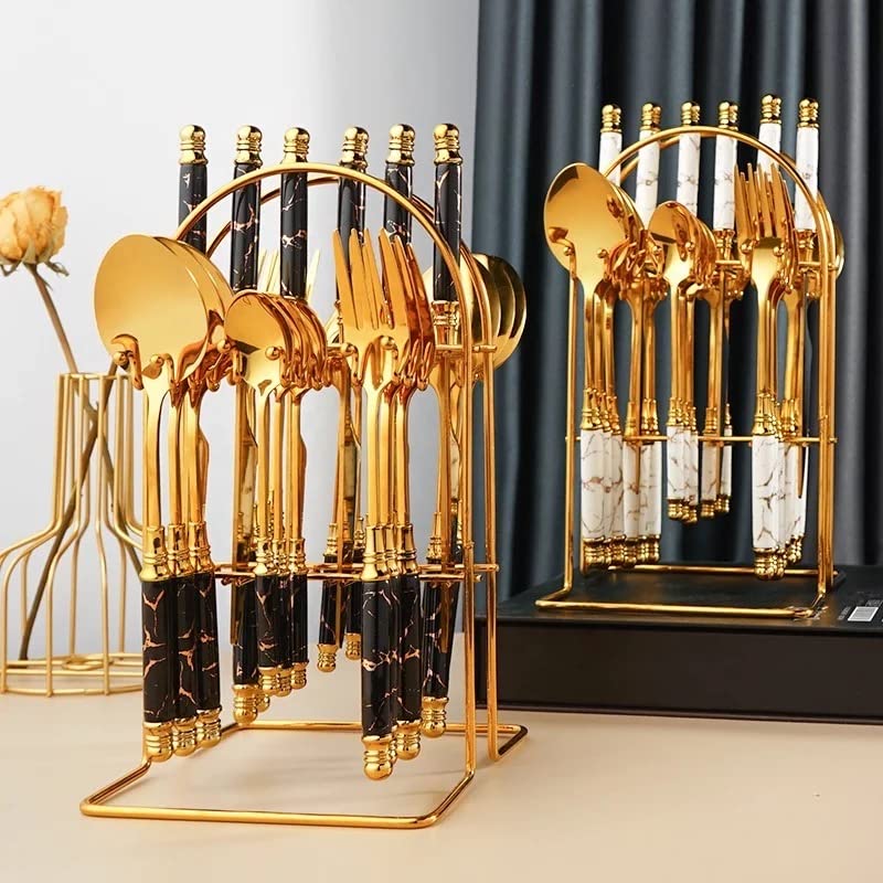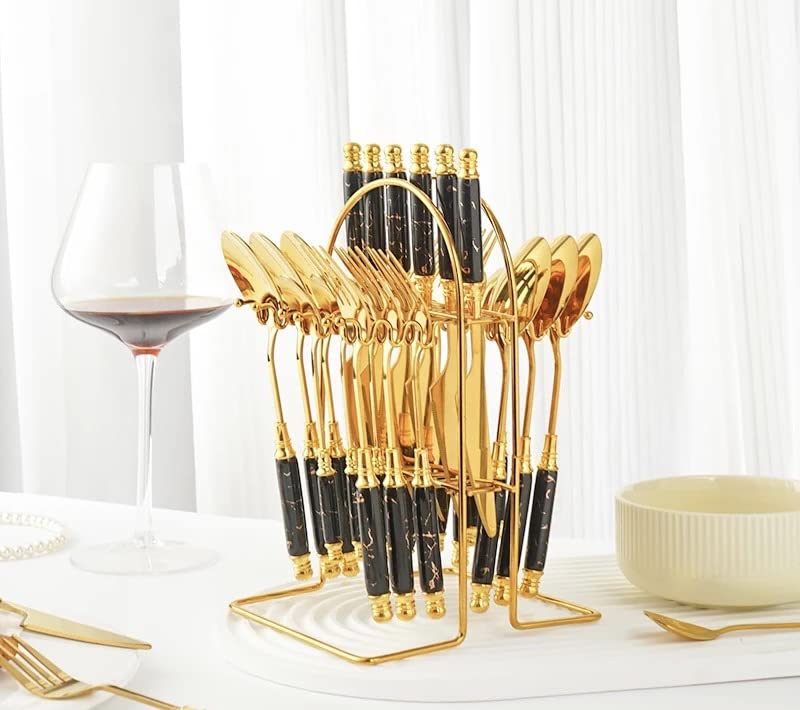 Be the first to review “CherryBox Spoon Royal Fork & Knife Set – Dinnerware Cutlery Set with Stand – Gold Plated | Stainless Steel – 24 Pcs (Black)”