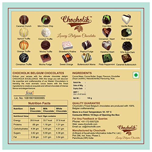 Chocholik Is The Only Indian Brand Which Has Its Innovative Special Ice Packaging To Send Chocolates Anywhere In India At Any Temperature, During Any Period Of The Month.; However, In Case Of Any Issue, You Can Approach The Most Friendly Customer Support Team.; Item Weight: 108 Grams; Shelf Life: 90 Days; Ingredient Type: Vegetarian; Package Contents: Smile Is A Curve That Sets Everything Straight Chocolate Gift Box – 9 Piece