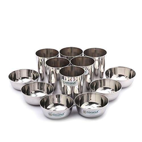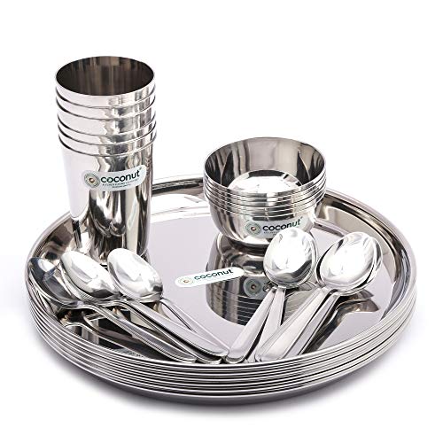 Coconut is a range of innovative and Quality products for Home and Kitchen. Coconut always keeps striving to provide you with the most Authentic products. Add Something Unique To Your Dinnerware With this 30 Piece Dinner Set. These Dinner Sets are crafted from Food Grade Premiu Quality Stainless Steel material. Rust Proof and Hygienic. It is very easy to clean and maintain. Dishwasher Safe & BPA free. This can be used as Gifting options for your Relatives or Friends on the Occasions like , Marriage, House warming Ceremony and other events. And it is also useful for Big and Joint Families to enjoy the Lunch or Dinner together. Product Content : SS Happy Dinner Set 30 Pieces Dinner Set – (Beeding Plate Thali 10”- Size 12 – 6 Pieces ) , (Amitabh Water Glass – 6 pieces), (Mukta Vati C9 Size 5 – 6 pcs) & R3 Tea Spoon – 12 Piece. (Note – Plate Rack Not included in Dinner set)