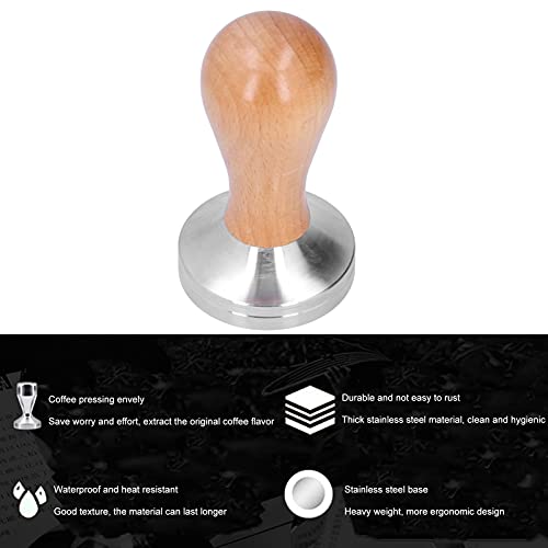 Coffee Tamper, Coffee Press Tamper Stainless Steel Durable 51mm Ergonomic Wooden Handle for Office for Home for Coffee Shop