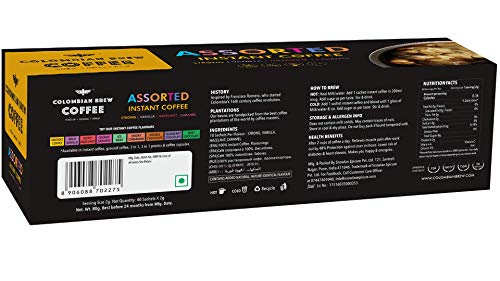 Colombian Brew Assorted Instant Coffee Box ( Strong,Vanilla,Hazelnut,Cinnamon)