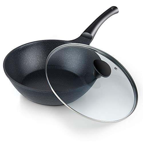 Cook N Home Marble Nonstick cookware Wok Saute stir Fry Pan, 11″ Lid, Black