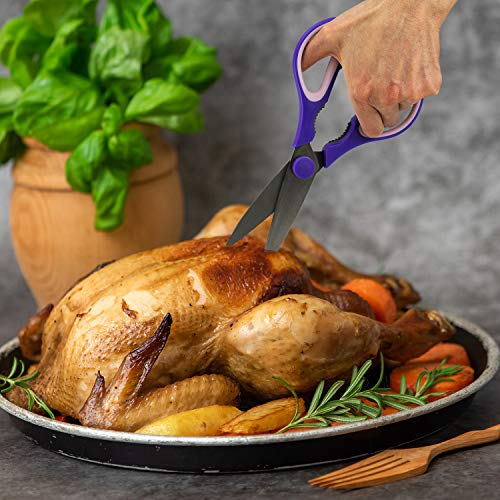 Set includes 2 versatile stylish kitchen shears designed for the modern kitchen making it easier to cut, slice and dice poultry, meats and herbs
