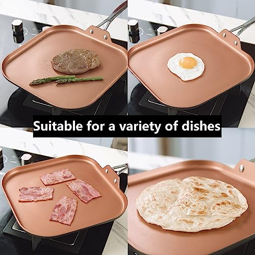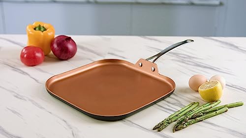 COOKSMARK 11-Inch Aluminum Nonstick Ceramic Griddle Pan with Stainless Steel Handle Induction Dishwasher Safe Oven Safe Copper Pan