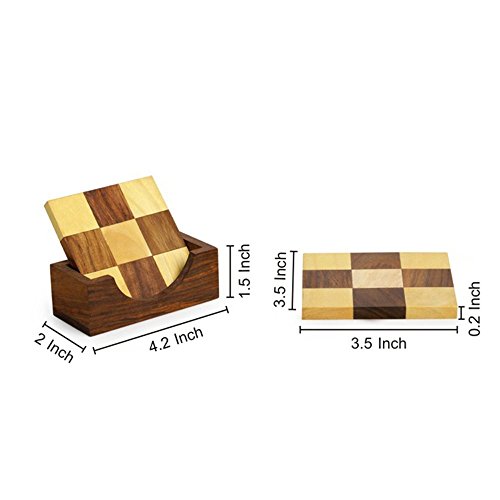 Craftbell Chess Patterned Wooden Tea Coasters Set Of 4 With Holder- Wooden Table Coaster / Tea Coffee Coaster / Mug Coaster / Tableware Table Top / Decorative Table Accessories / Coaster for Table Top / Wooden Coaster Set / Trivet Set / Diwali Gift Items