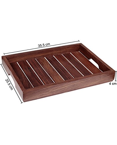 Dimensions :-Tray (L * W * H) = (14 * 10 * 2) Inch. Crafted from high quality indian sheesham wood with a natural finish