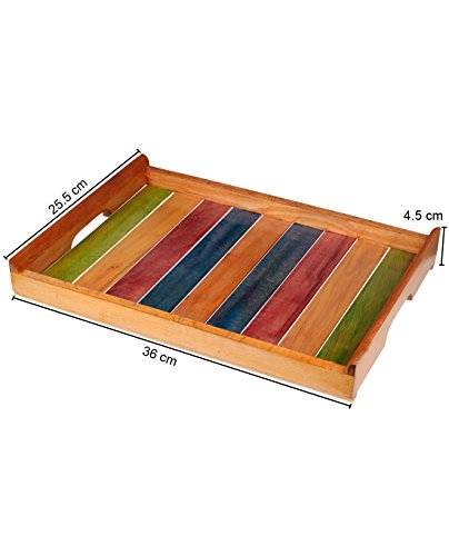 Dimensions :-Tray (L * W * H) = (14 * 10 * 1.5) Inch. Crafted from high quality steam beach wood with a natural finish