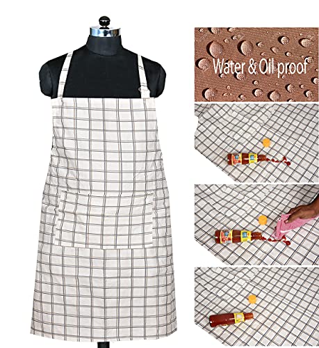 Large bib Apron that covers from chest to knee provides great coverage and protection from kitchen grease spills and food stains Note do not place apron nearby any heated cooking ware or flame