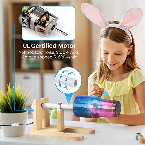 【UPGRADED CUP TURNER】UL Certified motor with PVC housing is silent & safe,not overheating.Lengthened 6.5 ft cord and On/Off switch for easy use.4-5 RPM slow spin speed makes the epoxy resin dry smoothly and evenly, great for tumbler crafts.