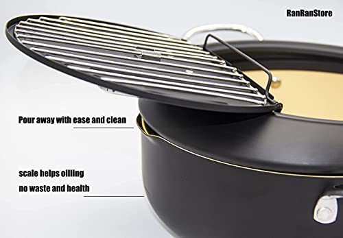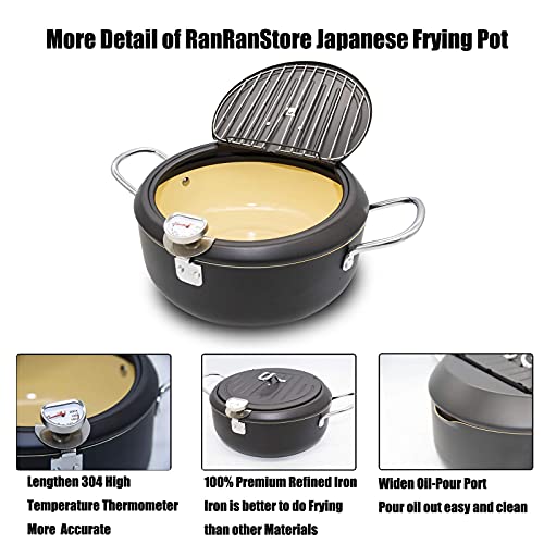 Cyrder Japanese Deep Fryer Pot with Fahrenheit Thermometer, High Temperature-Resisting Nonstick Coating with Oil Filtration, Fried tempura/chicken/fish/shrimp/meat ball, Easy Cleanup, Black, 10.2inch Deep Frying Pot