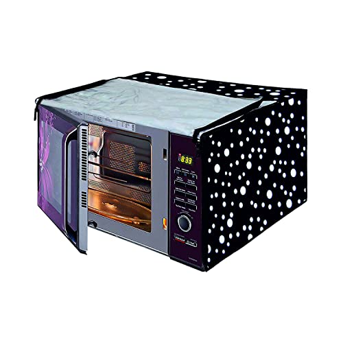 Da Anushi Full Closure Microwave Oven Top Cover for LG 28L MC2846BG Convection Microwave Oven with PVC Attractive Digital Prints/Dustproof/Water Resistant-Black Dot