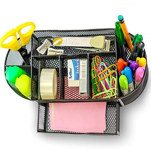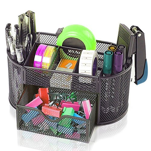 Free up desk space and keep your office essentials organized in the 9 divided compartments in this office supply caddy