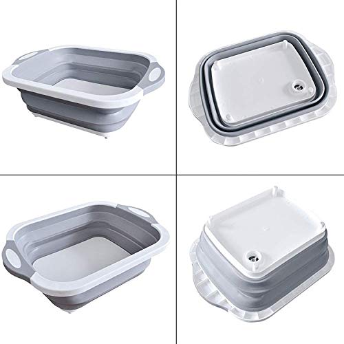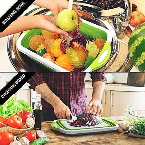 GOOD KITCHEN HELPER: New upgrade multi-function 3 in 1 food grade collapsible basket with draining plug, it can be used as a cutting board after folding, as a dish washing basin, drain basket and storage basket after opening, It’s a must for your kitchen!