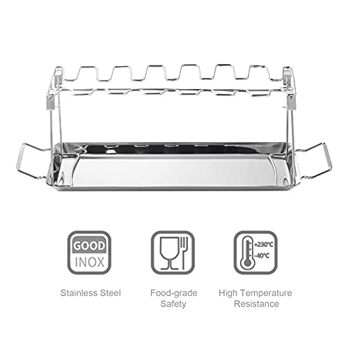 ▪ [Foldable]The sturdy rack folds out easily and will cook your chicken evenly without turning or flipping.