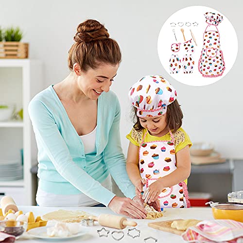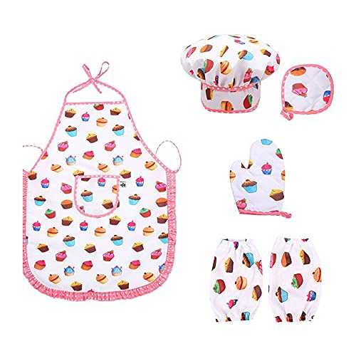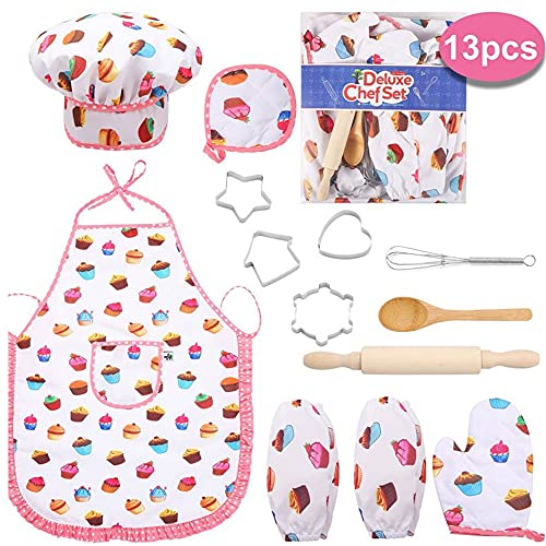 Decdeal Kids Cooking and Baking Set 11 PCS with Chef Hat Apron Oven Mitt Oversleeves Kitchen Utensils Children Chef Role Playset Educational Gift for Girls Boys Unisex