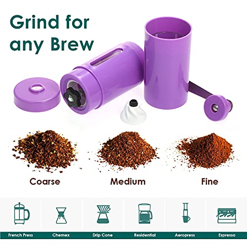 ▪ Portable & Easy to Clean — Compact size easy to store and carry on, and no space occupied. Burr manual coffee can be cleaned by brush or water,easy to travel with and disassemble for cleaning.