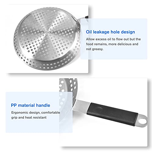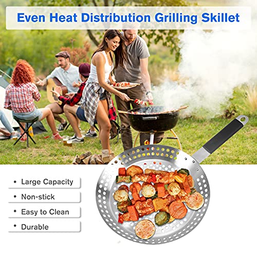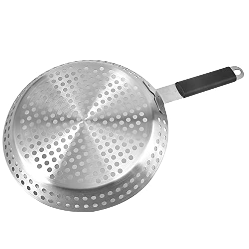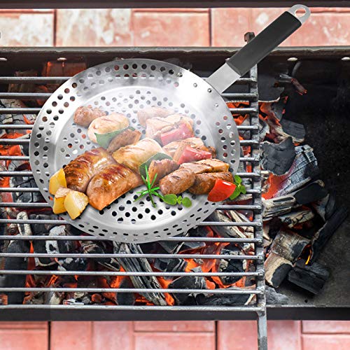 Decdeal Non-Stick Grill Skillet Stainless Steel Grilling Skillet Pan with Holes BBQ Frying Pan Heat Resistant Handle Outdoor Grill Barbecue Pan for Vegetables Seafood Meat