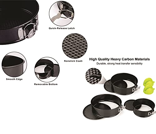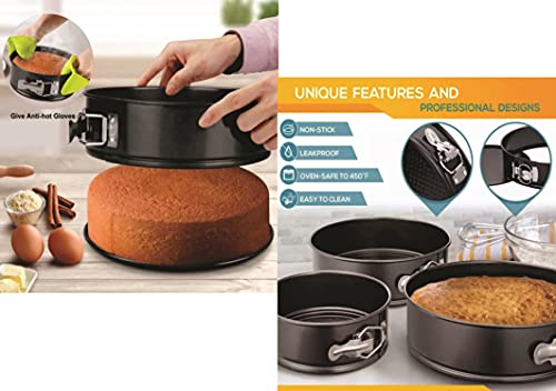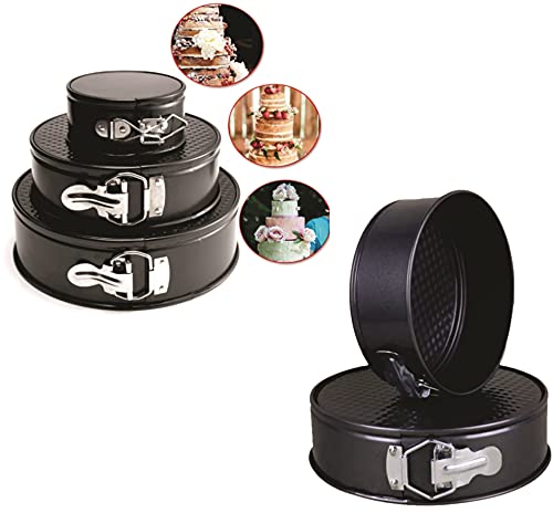 DECOR HOME Round Cake Mould Set of 3 | Non Sticky | Removable Base | Alluminium Based Cake Tin | Microvawe Cake Pan Mould_ Black