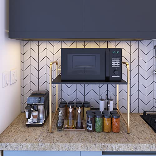 Be the first to review “DECOWORLD || Premium Metal Microwave Stand || Microwave & OTG Stand for Kitchen Counter|| Additional Platform for Extra Storage|| Kitchen Oven Rack with Round Edges (Black & Gold)”