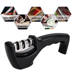 DEEJET Knife Sharpener Manual for Sharpening Dull Stainless Steel,Ceramic Knife and Steel Knives for 3 Stage Kitchen Sharpening Tool