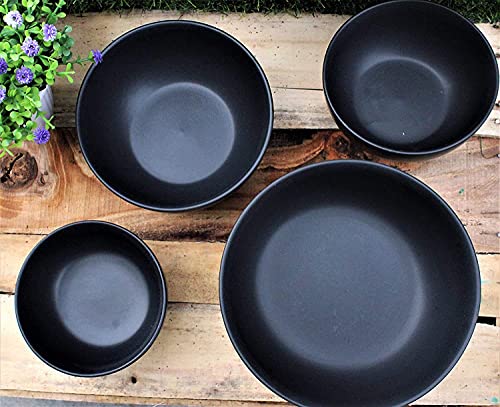 DekorGhar Pure Ceramic Mixing Bowls, Serving Bowl Set, Ceramic Cereal, Soup Bowl, Salad Bowls (Set of 4) (Black Matt)
