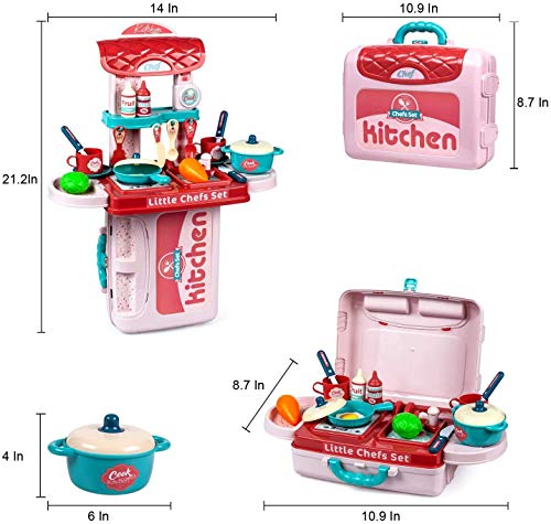 ➤MULTIPLE FEATURES TOY KITCHEN SET:cookware play-set with all the kitchen essentials is great for the aspiring cook. It gives your kid to explore the food identification, colors, counting and the wonder of their imagination through hours of kitchen pretend play.PLEASE NOTE: PRODUCT DIMENSIONDS (L*W*H): 14″*8.7″*21.2″